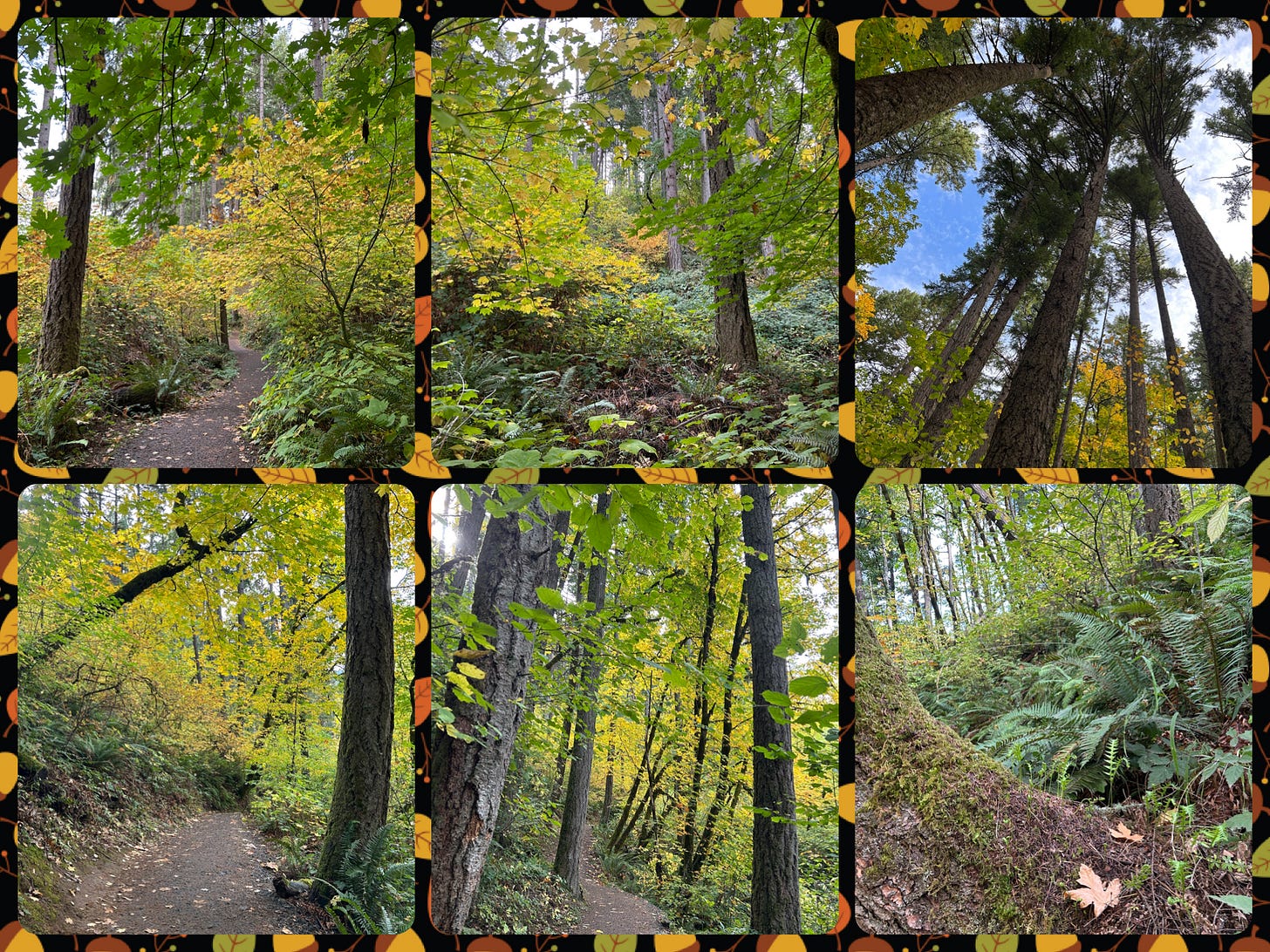 The woods beckoned me again, but this time during the day, thank heavens. The woods are now transformed, as the bigleaf maples have finally begun to turn color and shed their leaves. Suddenly, the lush green had turned to all shades of yellow, and gold mixed with the green of the ferns and evergreens.